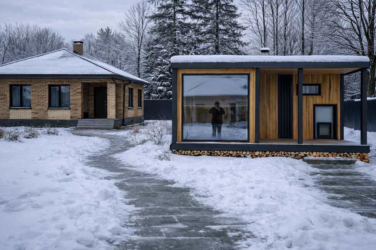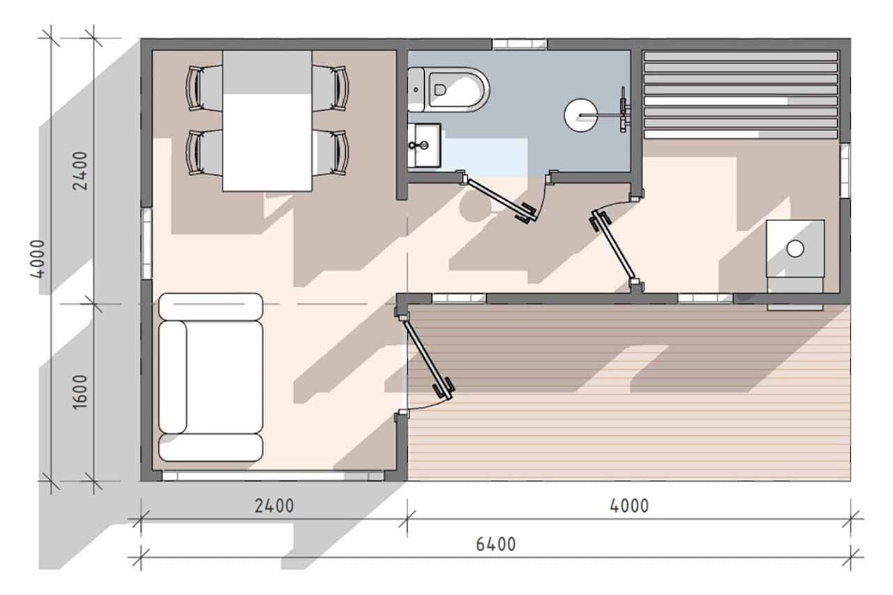 • Тип: модульная баня с террасой и комнатой отдыха