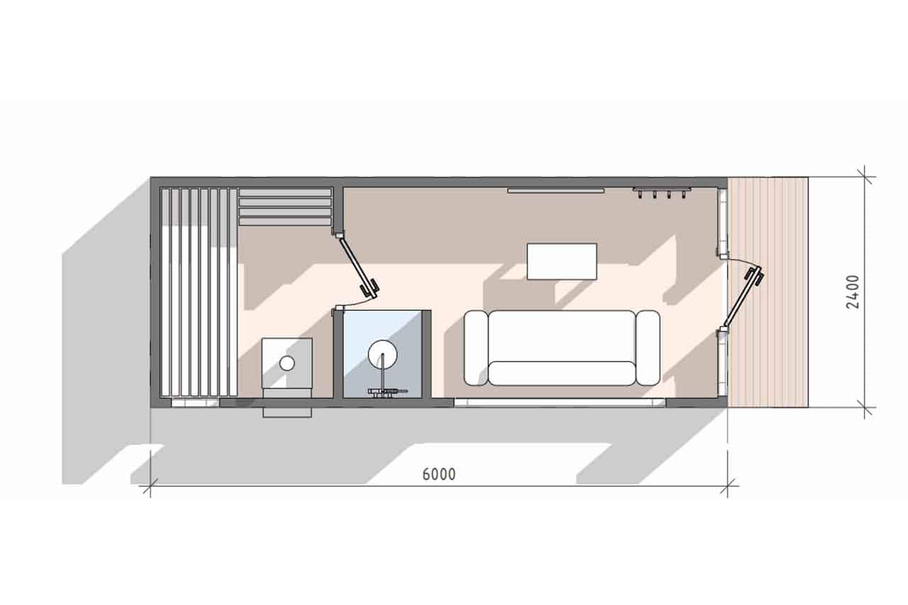 Баня 5-14 представляет собой баню на металлокаркасе в стиле барнхаус с комнатой отдыха. Небольшая отдельно стоящая баня будет отличным решением для вашего отдыха.