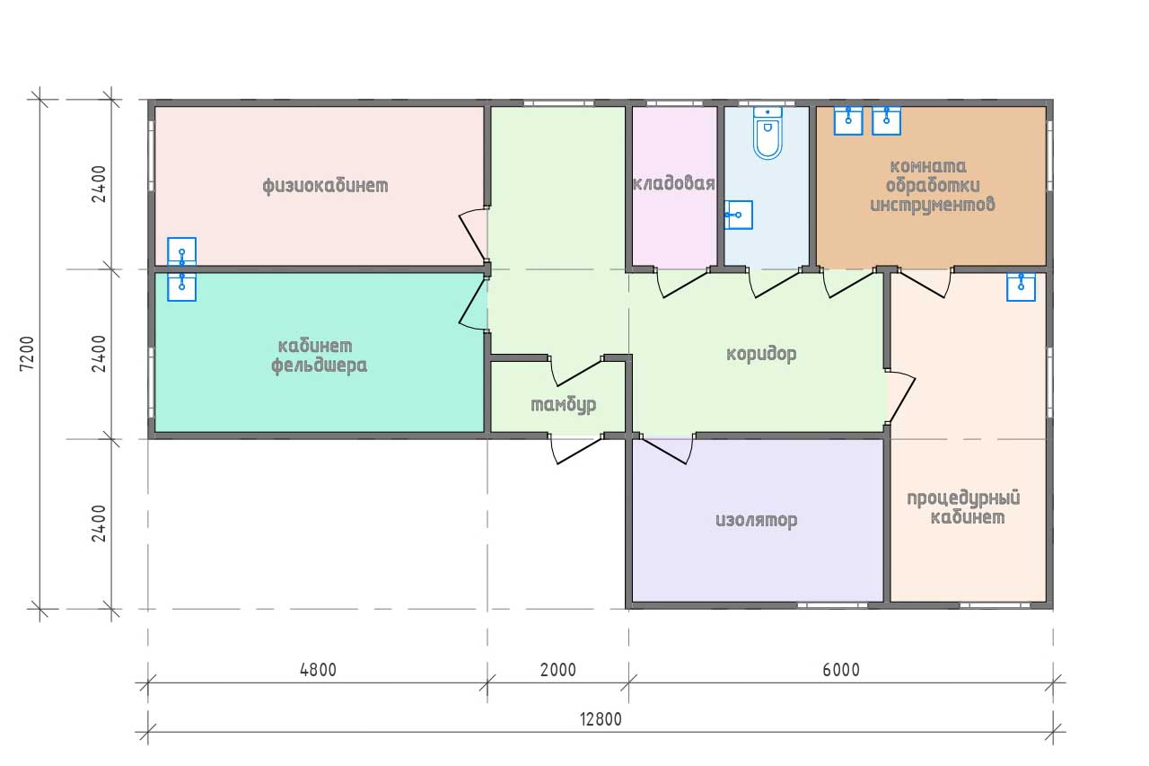 Главная страница » Продукция » Фельдшерско акушерский пункт 92 м2 ФАП-2-92