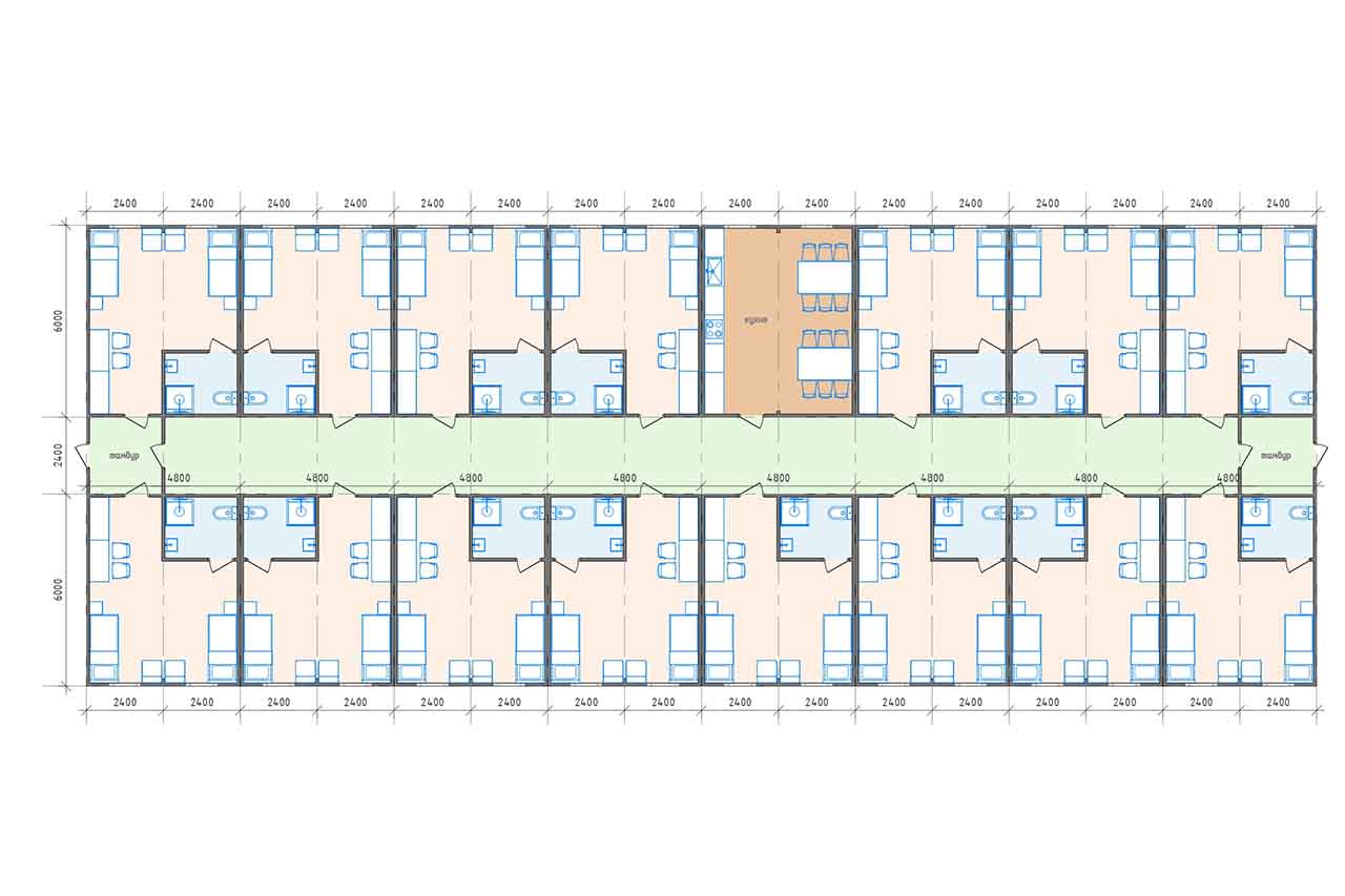 Главная страница » Продукция » Модульное общежитие 553 м2 МО-8-553