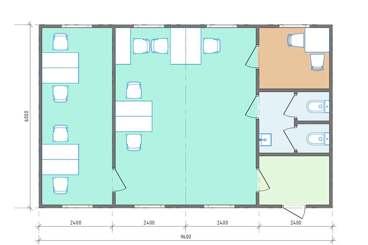 Главная страница » Продукция » Модульное здание АБК 58 м2 АБК 1-58
