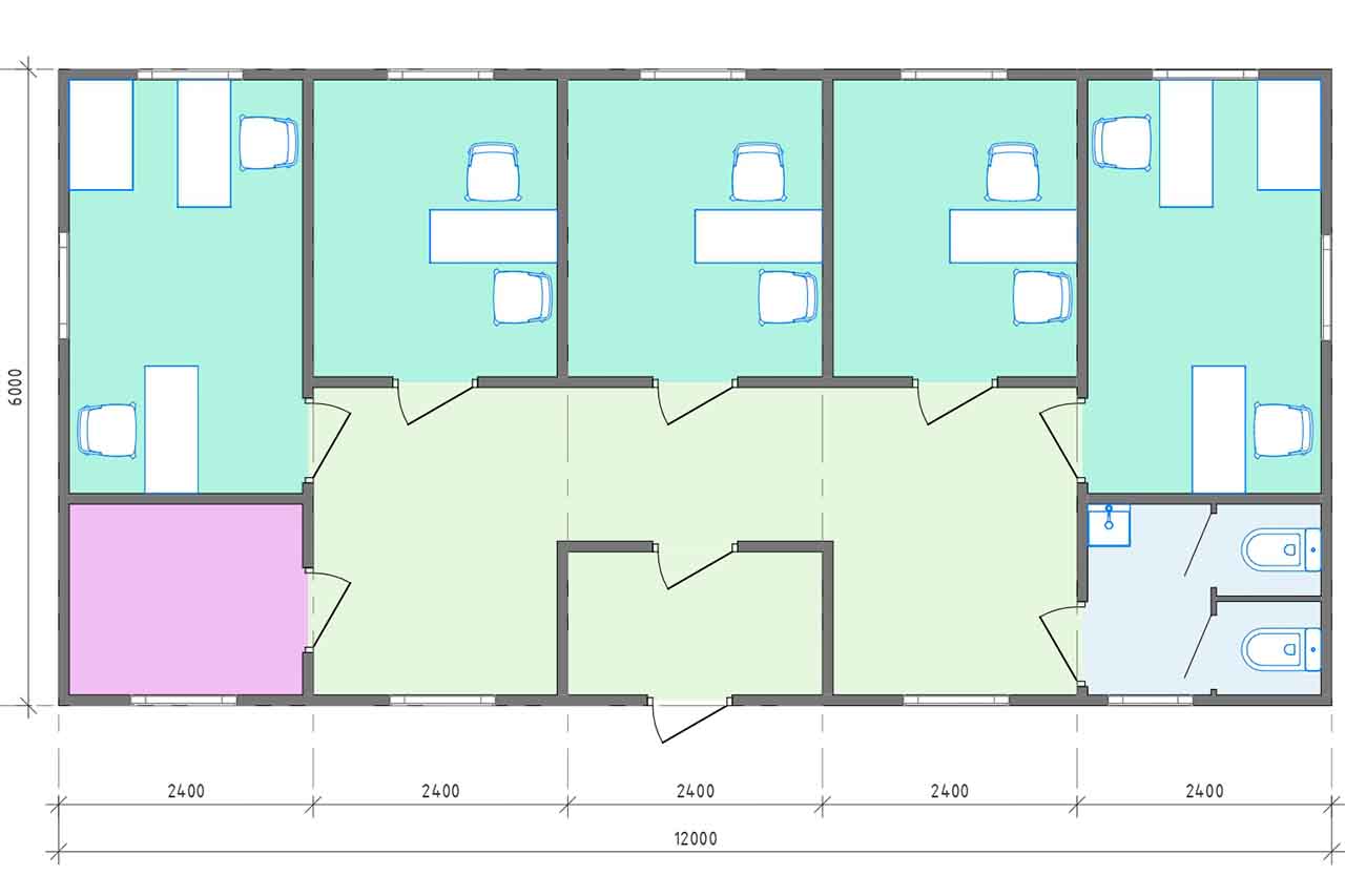 Главная страница » Продукция » Модульное здание АБК 72 м2 АБК 4-72