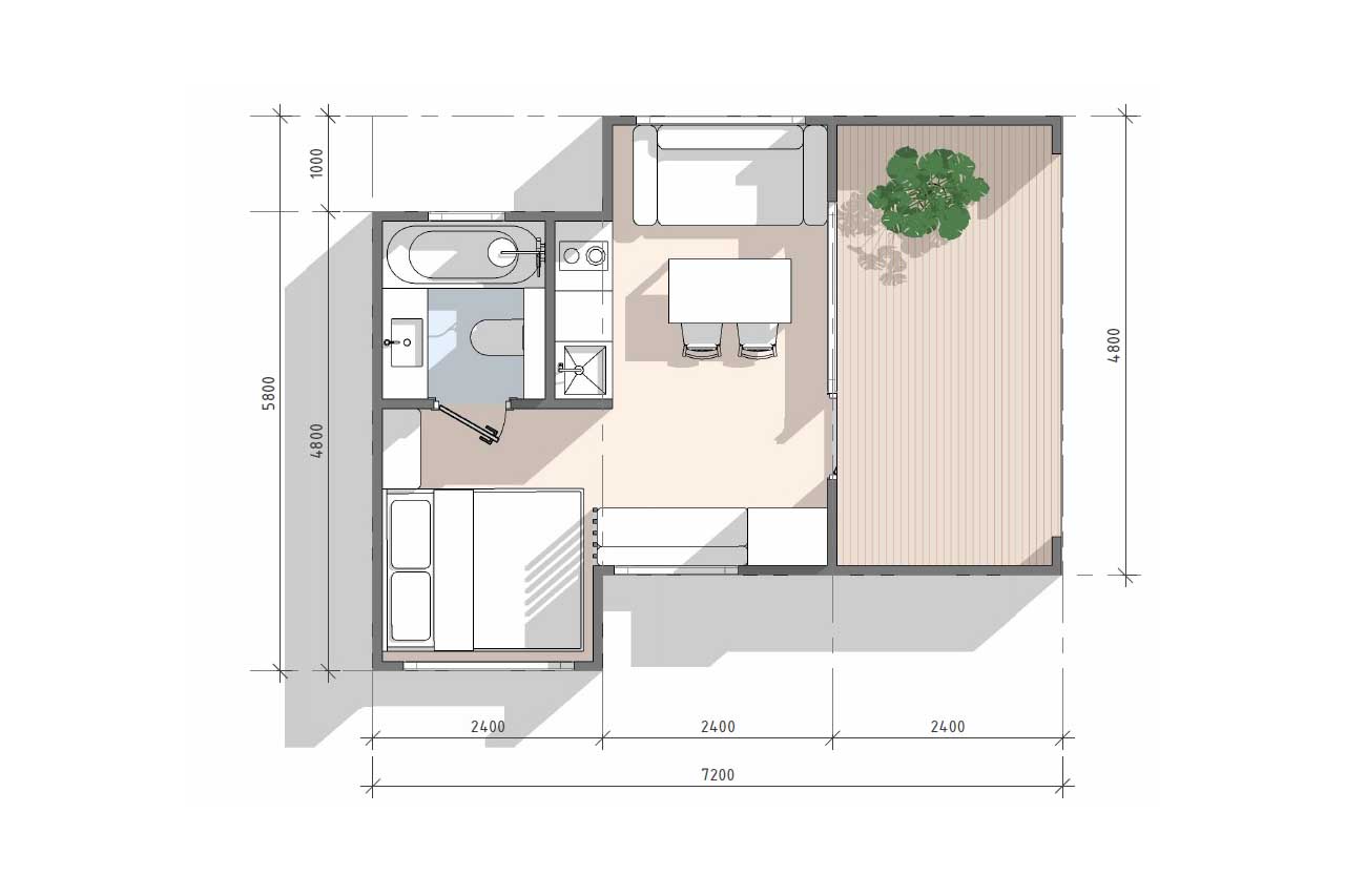 Главная страница » Продукция » Модульный дом 35 м2 МД-30-35