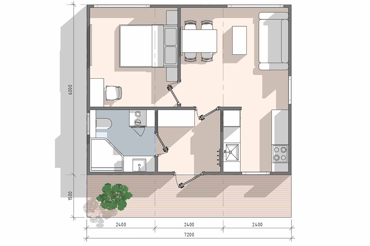 Главная страница » Продукция » Модульный дом 43 м2 МД-6-43 вариант 2