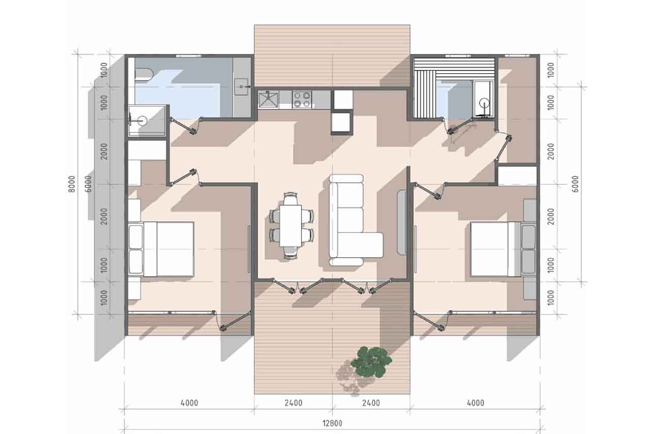 Главная страница » Продукция » Модульный дом с баней 93 м2 МД-40-93