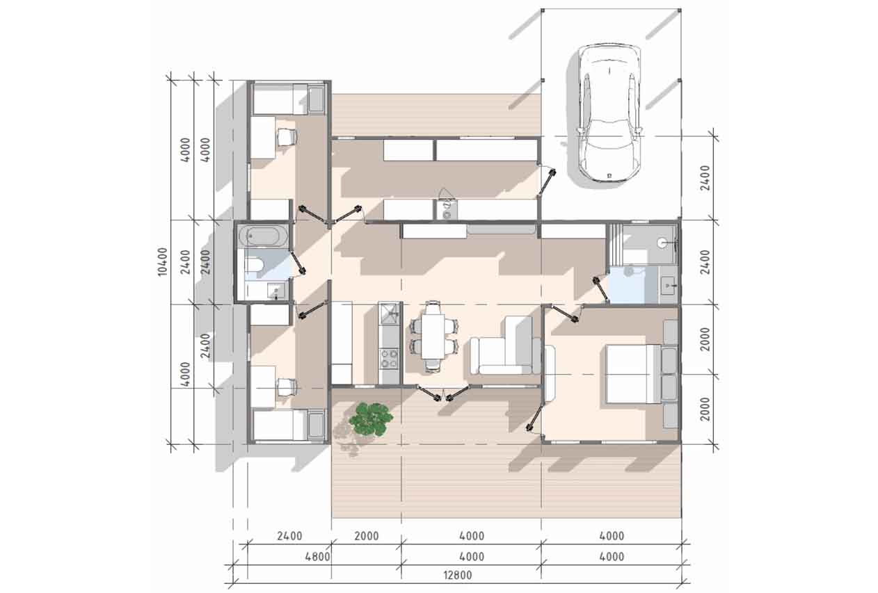 Главная страница » Продукция » Модульный дом с баней 95 м2 МД-39-95